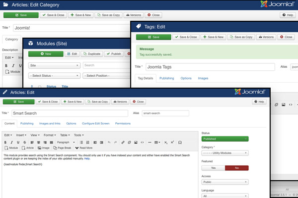 İçerik yönetimi özellikleri bir web sitesi büyüdükçe daha da önem kazanmaktadır. Çok sayıda menüler, makaleler, kategoriler veya sayfalar içeren web siteleriyle uğraşırken Joomla! arayüzünün sunduğu birçok avantaj vardır.