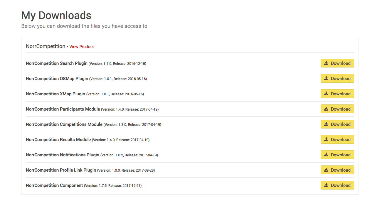 Öncelikle NorrCompetition dağıtım paketini indirmeniz gerekiyor. Ürün sayfasına geçin. Ürünü satın aldıktan sonra, NorrNext sitesindeki İndirmelerim bölümüne gitmeniz gerekiyor.