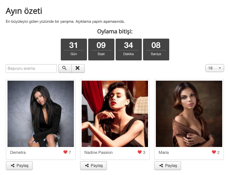 Böylece oylama tarihi'nin süresi doldu ve yarışmanın durumu tamamlandı. Sonuç olarak, kullanıcılar artık oy verme yeteneğine sahip değildir ve girişlerin listesi değişmiştir.