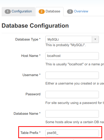 Tek tıklamayla yükleme ile yüklerseniz, web barındırıcınız bunu sizin için halleder. Joomla! site güvenliğiniz için bir başka önemli şey de Joomla! veritabanı önekinizdir.