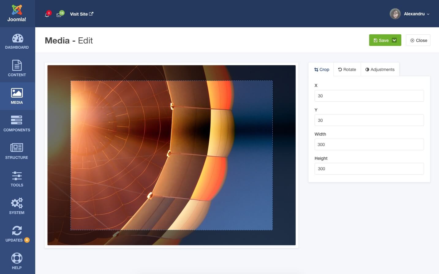 Hazırlanan konsept tasarıma göre, yerleşik görüntü düzenleme, görüntü renk ayarları ve daha kullanışlı özellikler Joomla! 4 medya yöneticisinde olacak.